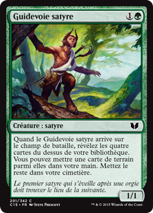 | Rules | When Satyr Wayfinder enters the battlefield, reveal the top four cards of your library. You may put a land card from among them into your hand. Put the rest into your graveyard. |