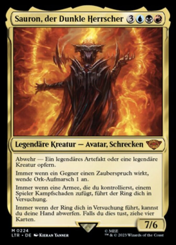| Rules | Ward—Sacrifice a legendary artifact or legendary creature. Whenever an opponent casts a spell, amass Orcs 1. Whenever an Army you control deals combat damage to a player, the Ring tempts you. Whenever the Ring tempts you, you may discard your hand. If you do, draw four cards. |