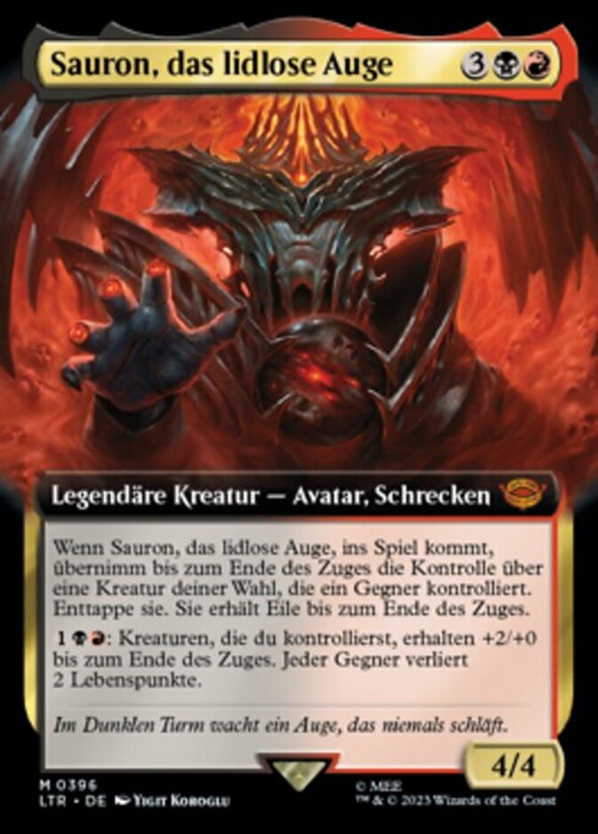 | Rules | When Sauron, the Lidless Eye enters the battlefield, gain control of target creature an opponent controls until end of turn. Untap it. It gains haste until end of turn. : Creatures you control get +2/+0 until end of turn. Each opponent loses 2 life. |