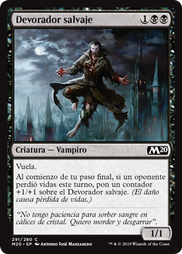 | Rules | Flying At the beginning of your end step, if an opponent lost life this turn, put a +1/+1 counter on Savage Gorger. (Damage causes loss of life.) |