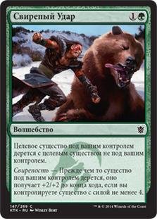 | Rules | Target creature you control fights target creature you don't control. Ferocious — The creature you control gets +2/+2 until end of turn before it fights if you control a creature with power 4 or greater. |
