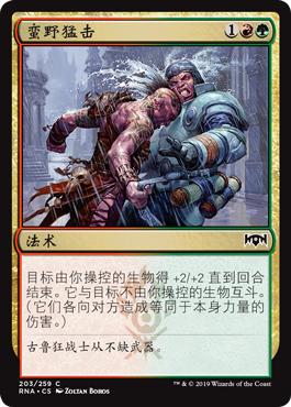 | Rules | Target creature you control gets +2/+2 until end of turn. It fights target creature you don't control. (Each deals damage equal to its power to the other.) |