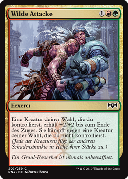 | Rules | Target creature you control gets +2/+2 until end of turn. It fights target creature you don't control. (Each deals damage equal to its power to the other.) |