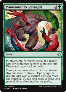 | Rules | This spell costs less to cast if it targets a Dinosaur you control. Put a +1/+1 counter on target creature you control. Then that creature fights target creature you don't control. (Each deals damage equal to its power to the other.) |