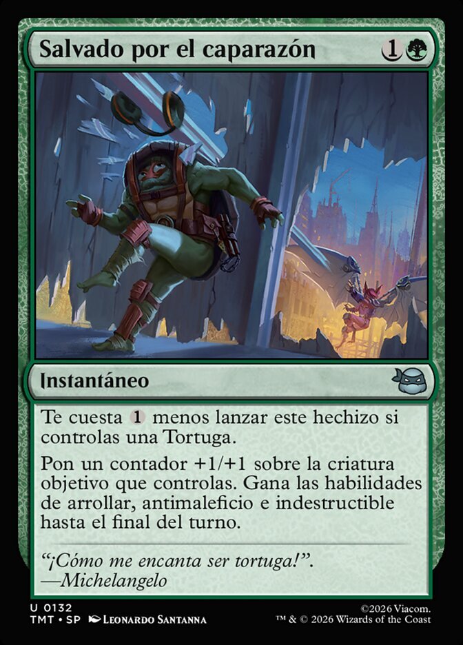 | Rules | This spell costs less to cast if you control a Turtle. Put a +1/+1 counter on target creature you control. It gains trample, hexproof, and indestructible until end of turn. |
