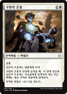 | Rules | Flash Enchant creature you control When Saving Grace enters the battlefield, all damage that would be dealt this turn to you and permanents you control is dealt to enchanted creature instead. Enchanted creature gets +0/+3. |