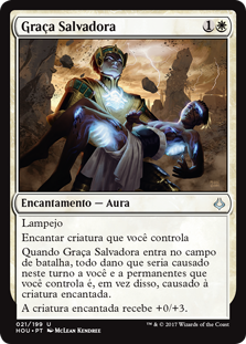 | Rules | Flash Enchant creature you control When Saving Grace enters the battlefield, all damage that would be dealt this turn to you and permanents you control is dealt to enchanted creature instead. Enchanted creature gets +0/+3. |