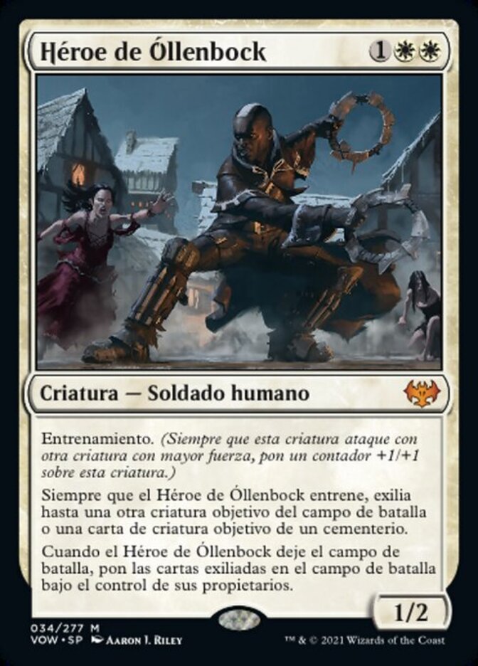 | Rules | Training (Whenever this creature attacks with another creature with greater power, put a +1/+1 counter on this creature.) Whenever Savior of Ollenbock trains, exile up to one other target creature from the battlefield or creature card from a graveyard. When Savior of Ollenbock leaves the battlefield, put the exiled cards onto the battlefield under their owners' control. |