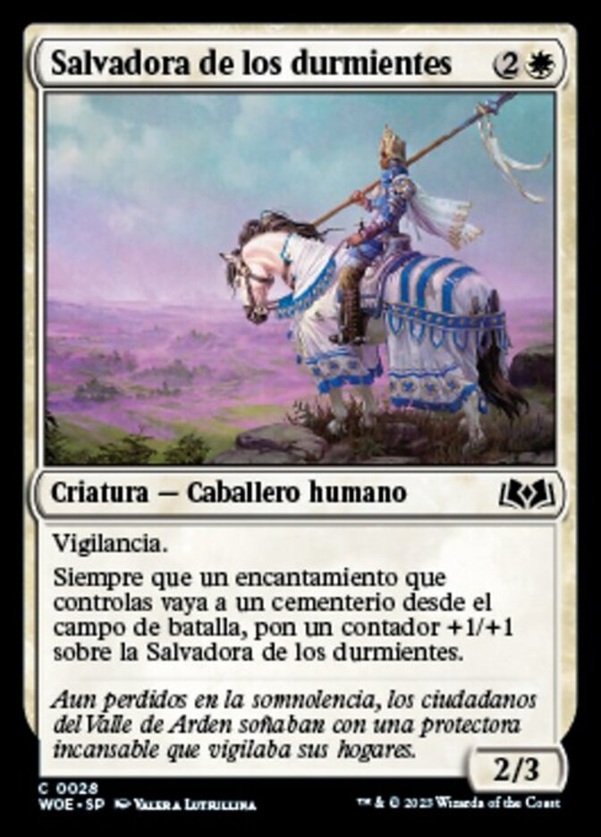 | Rules | Vigilance Whenever an enchantment you control is put into a graveyard from the battlefield, put a +1/+1 counter on Savior of the Sleeping. |