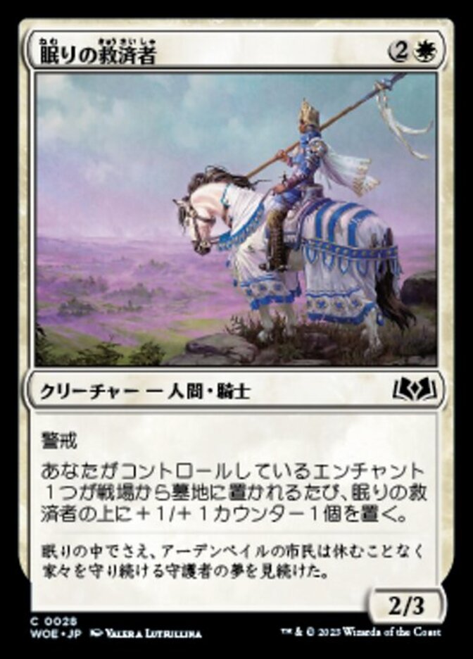 | Rules | Vigilance Whenever an enchantment you control is put into a graveyard from the battlefield, put a +1/+1 counter on Savior of the Sleeping. |
