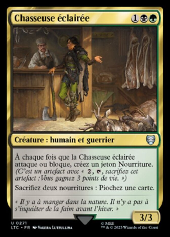 | Rules | Whenever Savvy Hunter attacks or blocks, create a Food token. (It's an artifact with ", , Sacrifice this artifact: You gain 3 life.") Sacrifice two Foods: Draw a card. |