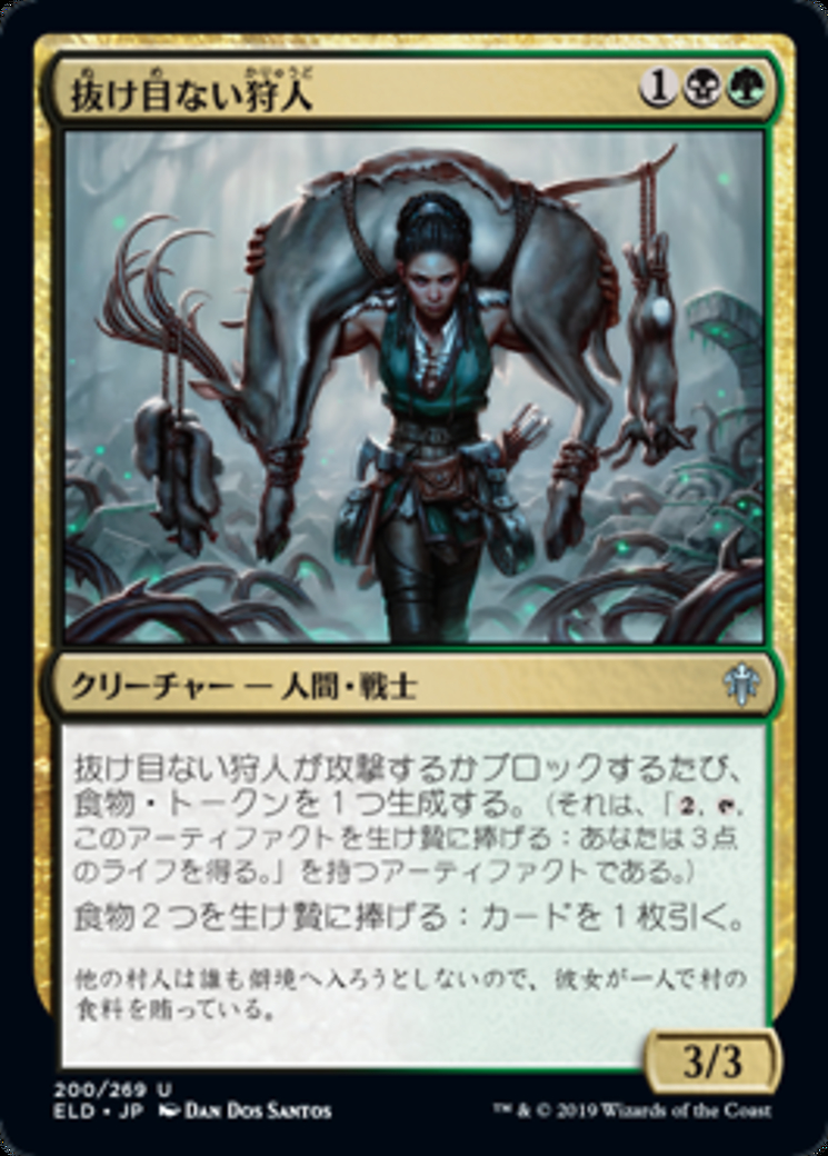 | Rules | Whenever Savvy Hunter attacks or blocks, create a Food token. (It's an artifact with ", , Sacrifice this artifact: You gain 3 life.") Sacrifice two Foods: Draw a card. |