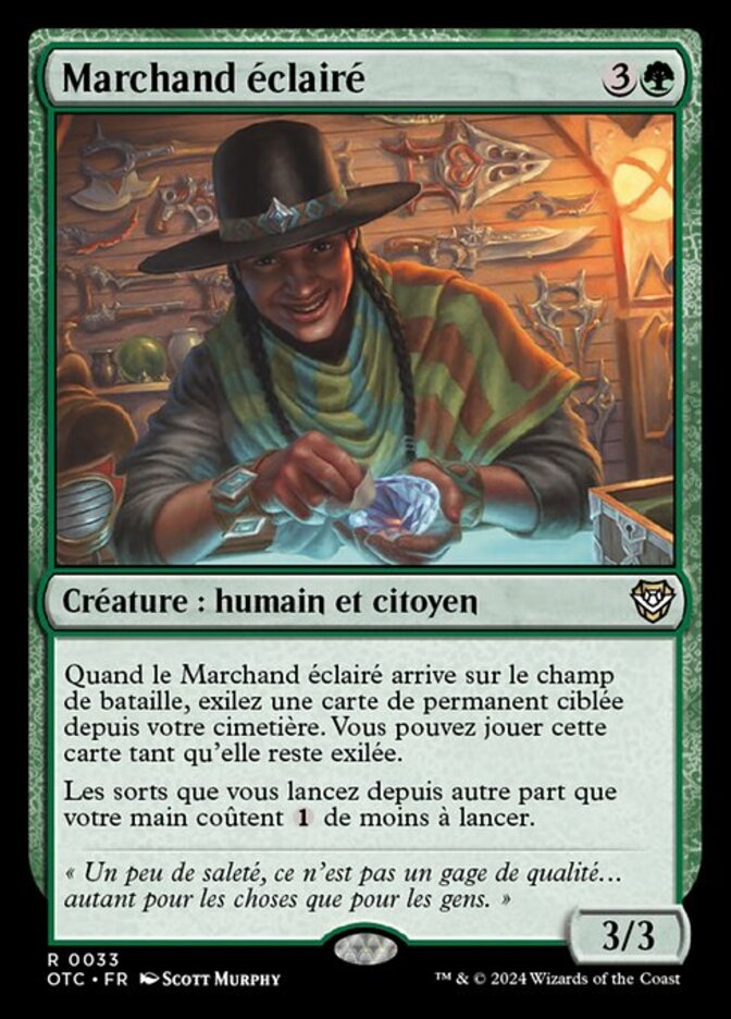| Rules | When Savvy Trader enters the battlefield, exile target permanent card from your graveyard. You may play that card for as long as it remains exiled. Spells you cast from anywhere other than your hand cost less to cast. |