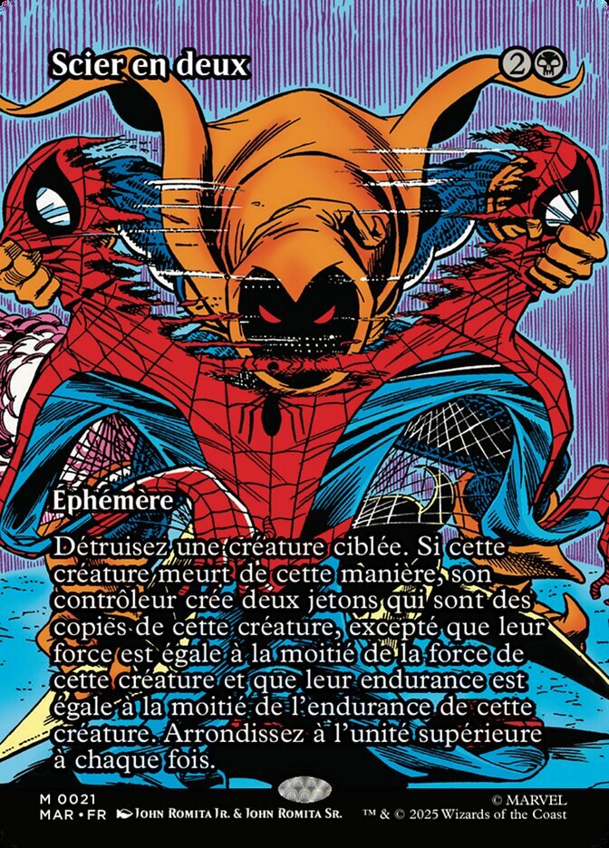 | Rules | Destroy target creature. If that creature dies this way, its controller creates two tokens that are copies of that creature, except their base power is half that creature's power and their base toughness is half that creature's toughness. Round up each time. |