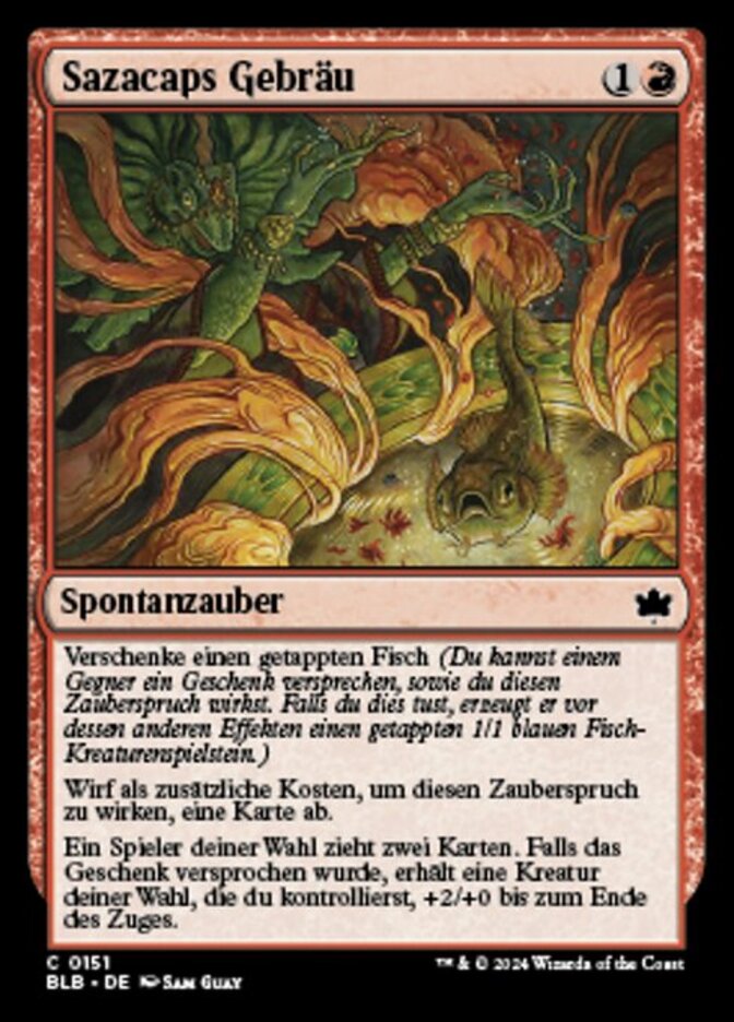 | Rules | Gift a tapped Fish (You may promise an opponent a gift as you cast this spell. If you do, they create a tapped 1/1 blue Fish creature token before its other effects.) As an additional cost to cast this spell, discard a card. Target player draws two cards. If the gift was promised, target creature you control gets +2/+0 until end of turn. |