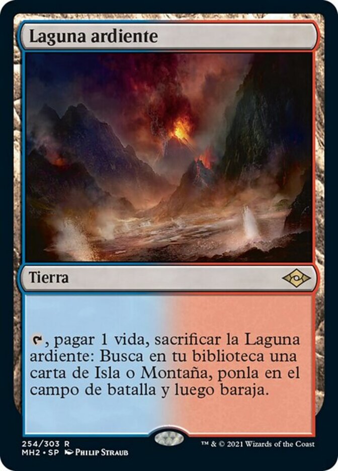 | Rules | , Pay 1 life, Sacrifice Scalding Tarn: Search your library for an Island or Mountain card, put it onto the battlefield, then shuffle. |