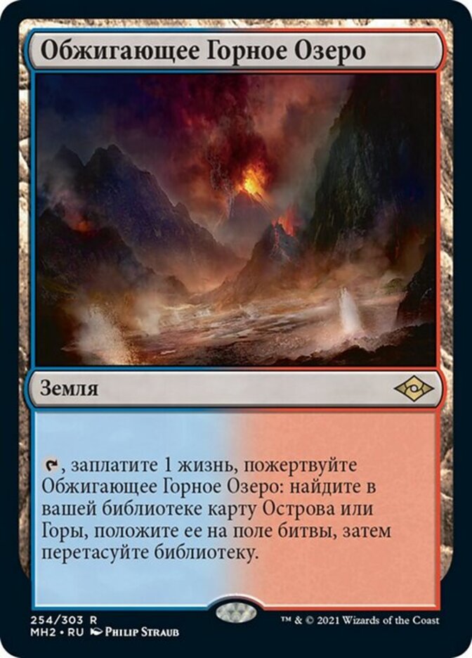 | Rules | , Pay 1 life, Sacrifice Scalding Tarn: Search your library for an Island or Mountain card, put it onto the battlefield, then shuffle. |