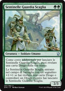 | Rules | As an additional cost to cast this spell, you may reveal a Dragon card from your hand. Scaleguard Sentinels enters the battlefield with a +1/+1 counter on it if you revealed a Dragon card or controlled a Dragon as you cast this spell. |