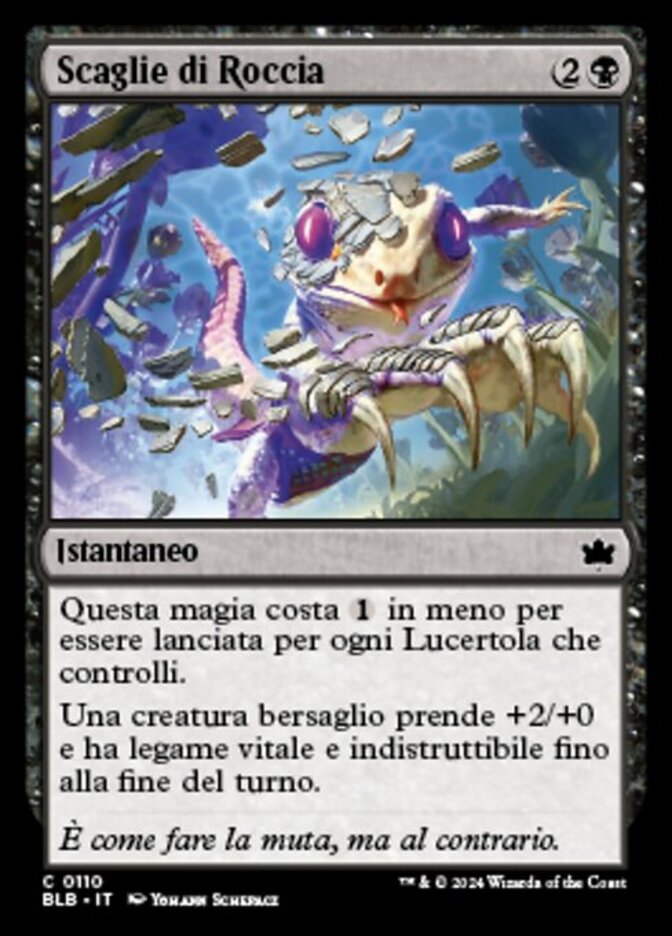 | Rules | This spell costs less to cast for each Lizard you control. Target creature gets +2/+0 and gains lifelink and indestructible until end of turn. |