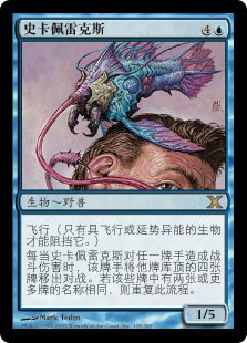 | Rules | Flying (This creature can't be blocked except by creatures with flying or reach.) Whenever Scalpelexis deals combat damage to a player, that player exiles the top four cards of their library. If two or more of those cards have the same name, repeat this process. |
