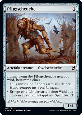 | Rules | Whenever Scaretiller becomes tapped, choose one — • You may put a land card from your hand onto the battlefield tapped. • Return target land card from your graveyard to the battlefield tapped. |