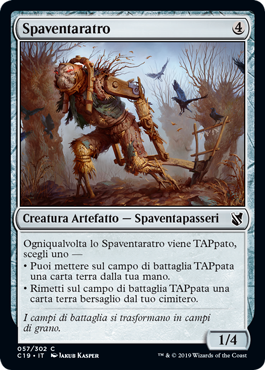 | Rules | Whenever Scaretiller becomes tapped, choose one — • You may put a land card from your hand onto the battlefield tapped. • Return target land card from your graveyard to the battlefield tapped. |