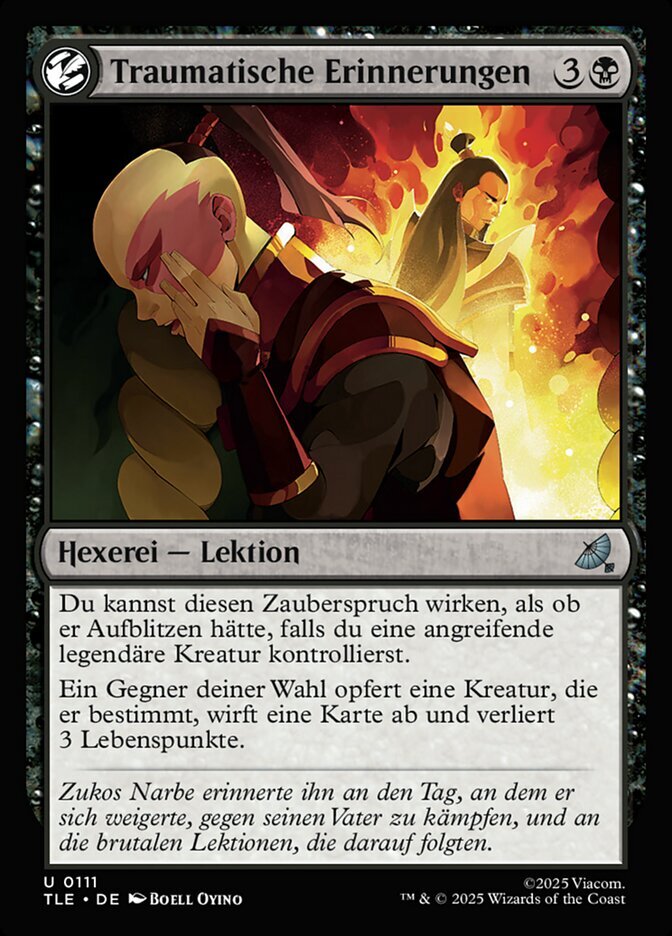 | Rules | You may cast this spell as though it had flash if you control an attacking legendary creature. Target opponent sacrifices a creature of their choice, discards a card, and loses 3 life. |