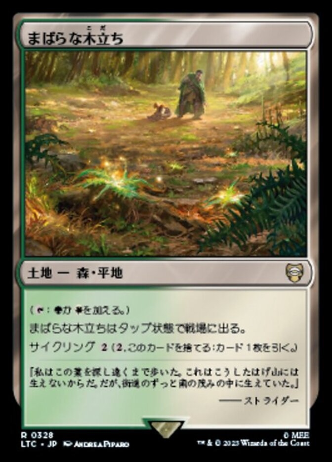 | Rules | (: Add or .) Scattered Groves enters the battlefield tapped. Cycling (, Discard this card: Draw a card.) |