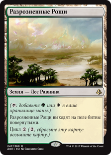 | Rules | (: Add or .) Scattered Groves enters the battlefield tapped. Cycling (, Discard this card: Draw a card.) |