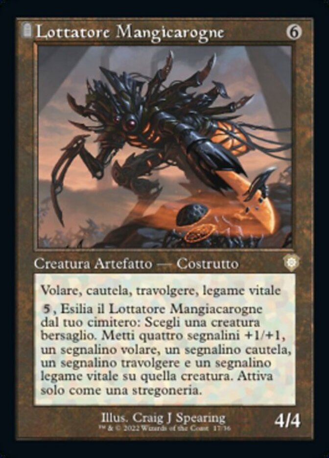 | Rules | Flying, vigilance, trample, lifelink , Exile Scavenged Brawler from your graveyard: Choose target creature. Put four +1/+1 counters, a flying counter, a vigilance counter, a trample counter, and a lifelink counter on that creature. Activate only as a sorcery. |