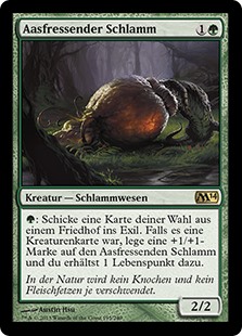 | Rules | : Exile target card from a graveyard. If it was a creature card, put a +1/+1 counter on Scavenging Ooze and you gain 1 life. |