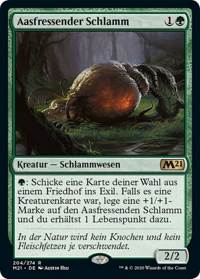 | Rules | : Exile target card from a graveyard. If it was a creature card, put a +1/+1 counter on Scavenging Ooze and you gain 1 life. |