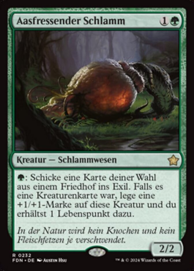 | Rules | : Exile target card from a graveyard. If it was a creature card, put a +1/+1 counter on Scavenging Ooze and you gain 1 life. |