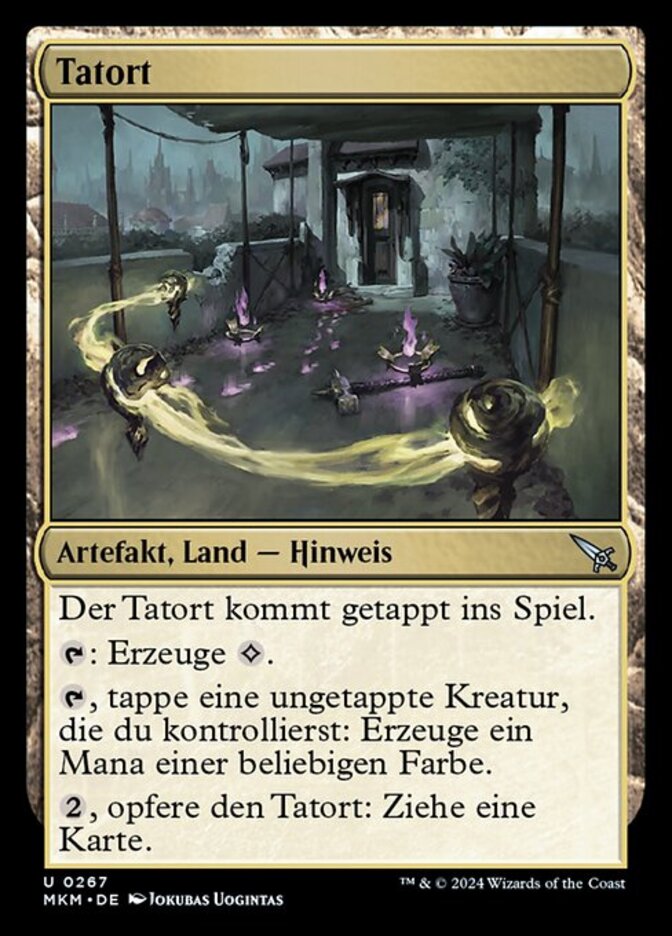 | Rules | Scene of the Crime enters the battlefield tapped. : Add . , Tap an untapped creature you control: Add one mana of any color. , Sacrifice Scene of the Crime: Draw a card. |