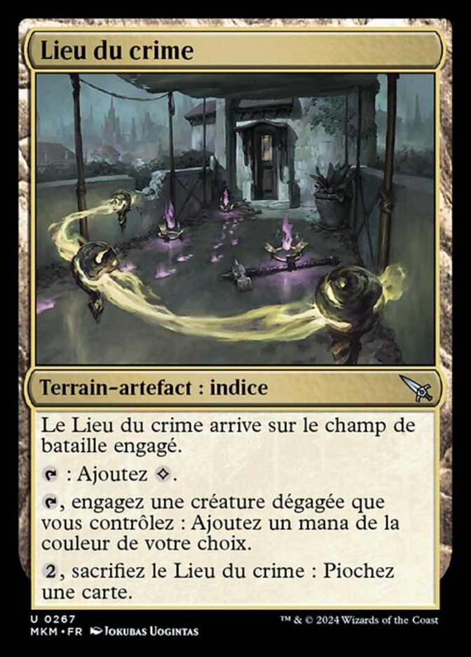| Rules | Scene of the Crime enters the battlefield tapped. : Add . , Tap an untapped creature you control: Add one mana of any color. , Sacrifice Scene of the Crime: Draw a card. |