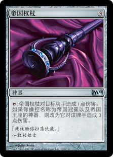| Rules | : Scepter of Empires deals 1 damage to target player or planeswalker. It deals 3 damage instead if you control artifacts named Crown of Empires and Throne of Empires. |