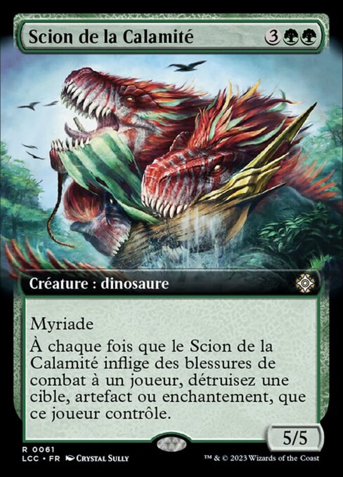 | Rules | Myriad (Whenever this creature attacks, for each opponent other than defending player, you may create a token that's a copy of this creature that's tapped and attacking that player or a planeswalker they control. Exile the tokens at end of combat.) Whenever Scion of Calamity deals combat damage to a player, destroy target artifact or enchantment that player controls. |