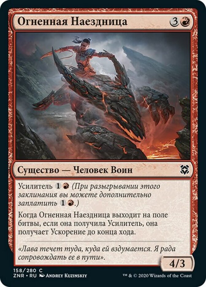 | Rules | Kicker (You may pay an additional as you cast this spell.) When Scorch Rider enters the battlefield, if it was kicked, it gains haste until end of turn. |