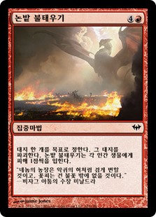 | Rules | Destroy target land. Scorch the Fields deals 1 damage to each Human creature. |