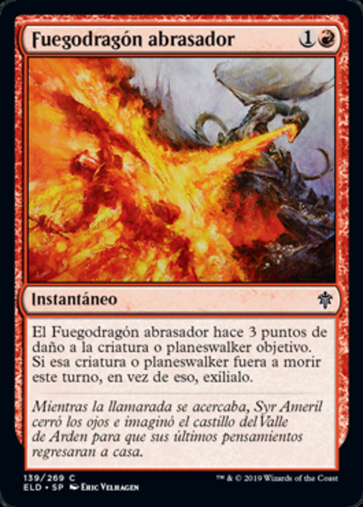 | Rules | Scorching Dragonfire deals 3 damage to target creature or planeswalker. If that creature or planeswalker would die this turn, exile it instead. |