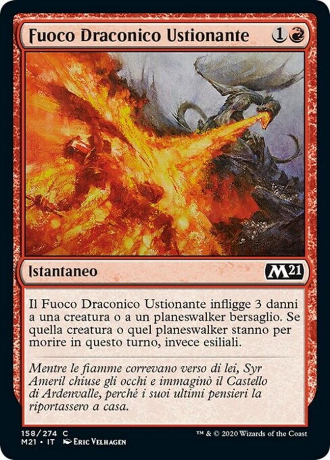 | Rules | Scorching Dragonfire deals 3 damage to target creature or planeswalker. If that creature or planeswalker would die this turn, exile it instead. |