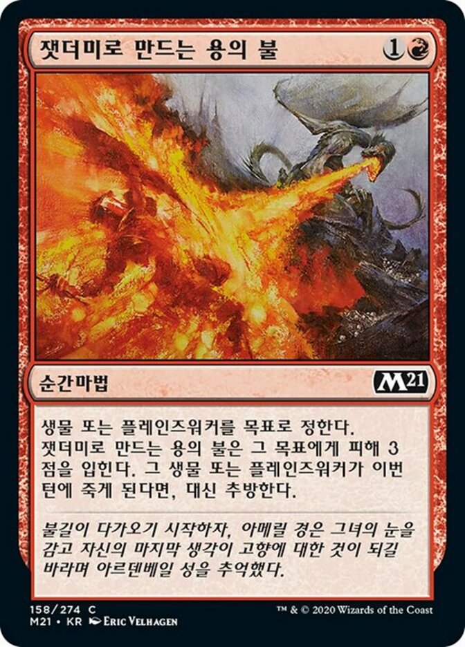 | Rules | Scorching Dragonfire deals 3 damage to target creature or planeswalker. If that creature or planeswalker would die this turn, exile it instead. |