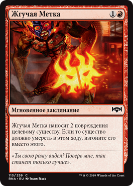 | Rules | Scorchmark deals 2 damage to target creature. If that creature would die this turn, exile it instead. |