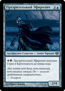 | Rules | : Scornful Aether-Lich gains fear and vigilance until end of turn. (Attacking doesn't cause it to tap, and it can't be blocked except by artifact creatures and/or black creatures.) |
