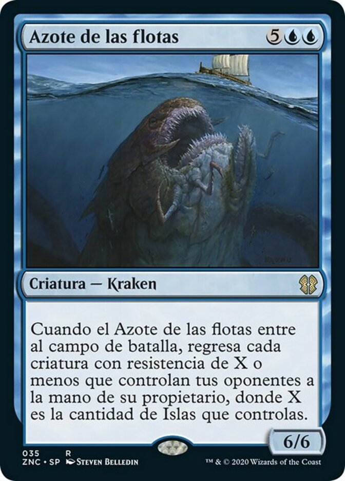 | Rules | When Scourge of Fleets enters the battlefield, return each creature your opponents control with toughness X or less to its owner's hand, where X is the number of Islands you control. |