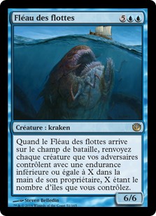 | Rules | When Scourge of Fleets enters the battlefield, return each creature your opponents control with toughness X or less to its owner's hand, where X is the number of Islands you control. |