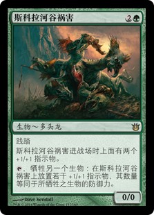 | Rules | Trample Scourge of Skola Vale enters the battlefield with two +1/+1 counters on it. , Sacrifice another creature: Put a number of +1/+1 counters on Scourge of Skola Vale equal to the sacrificed creature's toughness. |