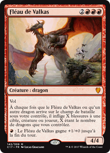| Rules | Flying Whenever Scourge of Valkas or another Dragon enters the battlefield under your control, it deals X damage to any target, where X is the number of Dragons you control. : Scourge of Valkas gets +1/+0 until end of turn. |