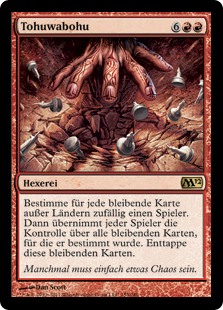 | Rules | For each nonland permanent, choose a player at random. Then each player gains control of each permanent for which they were chosen. Untap those permanents. |