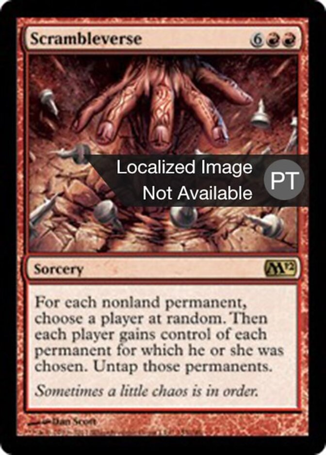 | Rules | For each nonland permanent, choose a player at random. Then each player gains control of each permanent for which they were chosen. Untap those permanents. |